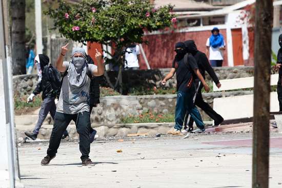 A la llegada de carabineros, lxs jóvenes arrojaron piedras contra los agentes. La policía utilizo gran cantidad de gases y el carro lanza aguas para dispersar a lxs encapuchadxs quienes se replegaron hacia el liceo.