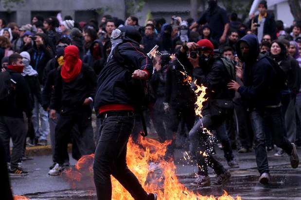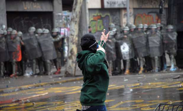 La nefasta institución dijo que Carabineros fueron atacados con gran cantidad de botellas con ácido, bombas de pintura y molotov, además desde los manifestantes fueron lanzadas dos granadas lacrimógenas contra la policía.