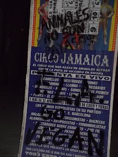 Cerca de 15 carteles del circo Jamaica fueron pintados con consignas por la liberación animal.