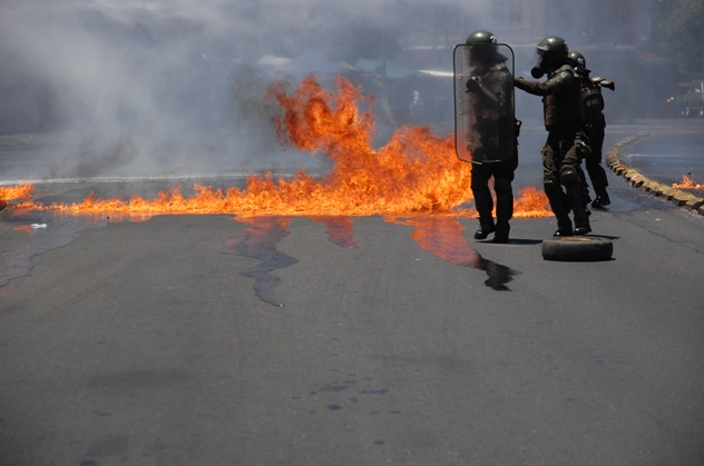 Fotos del martes 4/12, donde encapuchadxs salieron desde la Usach a cortar dos puntos de la Alameda. Los enfrentamientos se dieron dentro de la lucha estudiantil y por conflictos internos contra el “plan campus seguro” llevado a cabo por las autoridades de la universidad para terminar con este tipo de iniciativas.