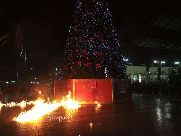 La noche del viernes 14 de Diciembre, pasadas las 22:00 horas, encapuchadxs lanzaron bombas molotov contra el gran Arbol Navideño que anualmente es instalado frente al centro comercial “Mall Paseo Estación”, ubicado en la comuna de Estación Central.