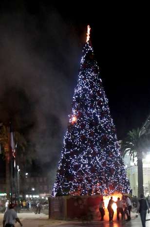 Producto del las llamas el arbol navideño comenzó rapidamente a arder, pero lamentablemente los esmerados guardias corrieron para salvar el simbolo navideño del capitalismo y el cristianismo, y no fuera reducido a cenizas, resultando solo con algunos daños y con un gran menoscabo a las lógicas del mercado.