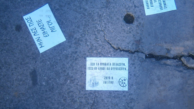 Una vez en las afueras de los tribunales, lxs manifestantes permanecieron más de média hora mostrando su apoyo a lxs compas procesadxs y, luego, la manifestación retomó la marcha en dirección a Exarchia, donde finalmente se dispersaron los bloques de los varios colectivos.