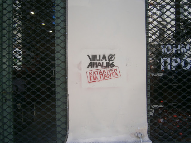 La gente comenzó a reunirse en los Propileos desde el mediodía y la marcha comenzó poco antes de las 14:00 horas, en dirección a los tribunales de Evelpidon, donde se presentaban ante las autoridades judiciales lxs 92 compas arrestadxs tras la reokupación de Villa Amalias.